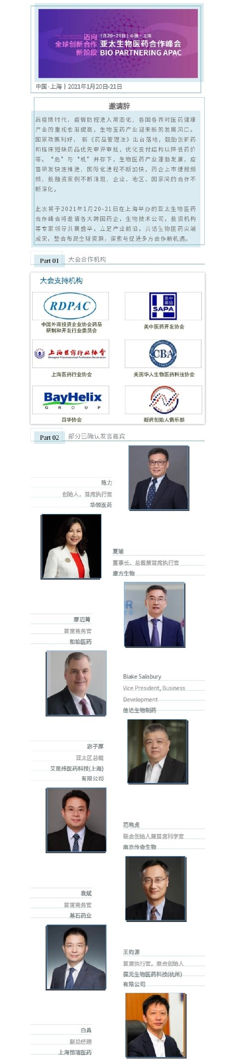 重磅回归!Bio Partnering APAC 2021开年与您再次相约上海!