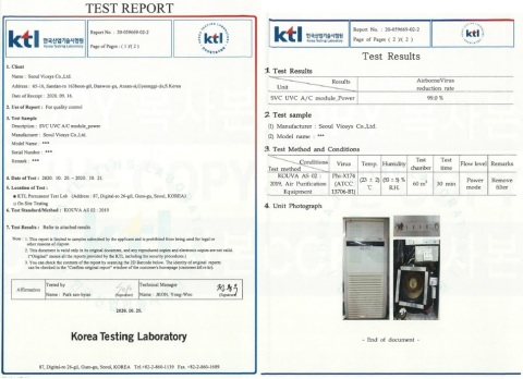 韩国 安山--(美国商业资讯)--首尔伟傲世(KOSDAQ: 092190),领先的化合物半导体解决方案提供商,韩国测试实验室(KTL)的测试结果证明,装有该公司紫外线LED Violeds模块的空调和供暖系统可杀灭99%的空气传播病毒。该测试显示,Violeds是帮助预防雾化病毒所致COVID-19大流行传播的突破性技术。