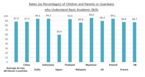 东京--(美国商业资讯)--由SPRIX(总部:东京都丰岛区;代表董事兼总裁:Hiroyuki Tsuneishi)运营的SPRIX研究所(SPRIX Research Institute)开展了两项调查,旨在更好地了解世界各地的教育状况。这两项调查均针对11个不同国家的儿童及其父母或监护人。第一项调查是认知度调查,重点是学习;第二项调查是知识调查,重点是衡量基本学业技能。