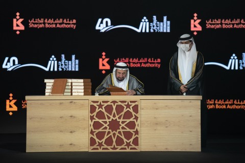 沙迦酋长在沙迦国际书展上为《阿拉伯语历史语料库》签名(照片:AETOSWire)