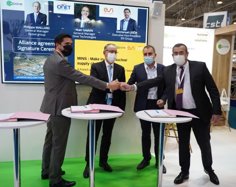 Apave、ESI集团(Paris:ESI)和Onet Technologies在2021年世界核工业展览会(World Nuclear Exhibition, WNE)上正式确定了合作关系,三方将通过结成MINS(印度制造核供应链支持)联盟来建立共同的价值主张,以推进在印度西部贾拉普尔地区建造六座EPR反应堆的项目。